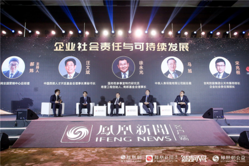 中英人寿副总裁马旭受邀出席“行动者联盟”公益盛典,并在高峰公益论坛与凤凰网全国营销中心总经理郝炜,希望工程创始人徐永光,中国西部人才开发基金会理事长兼秘书长汪文斌和吉利控股集团公关传播部部长宋兆桓就“企业社会责任与可持续发展”进行精彩的观点碰撞,探讨企业公民理念在扶贫、教育、环境保护、公共卫生等众多领域的延伸,和商业资本进入公益慈善领域后备受关注的诸多话题。
