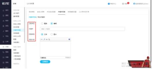 匹配类型可以选择模糊或者精准。关键字是学员在输入关键字的时候系统自动回复,回复类型可以选择文字或者图片,回复内容是学员在公众号聊天框输入关键字的以后系统自动回复的内容。关键字回复添加好后可以进行编辑和删除的操作。
