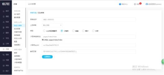 小程序:通过服务号菜单,可以直接跳转到小程序。必须填写小程序正确的链接和小程序的app id。选择该类型后,链接地址和app id会默认为格子匠匹配的小程序信息。小程序店铺搭载完成,学员可以从小程序进入在线微课堂。