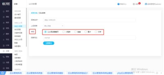 自定义菜单可以新增菜单,菜单可以增加菜单名字、上级菜单、类型、链接地址等,创建好后一定要点击发布到公众号上才可以使用。设置菜单时可以选择公众号店铺首页、小程序、链接、图片、文字五种不同类型 。