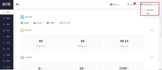 第四步:注册好机构后台账号。建议使用 360 或谷歌浏览器登录格子匠交付好的后台系统,登入后台的用户名 admin 为超级管理员权限,可在概况页面右上角点击修改登入密码,获得机构后台账号。