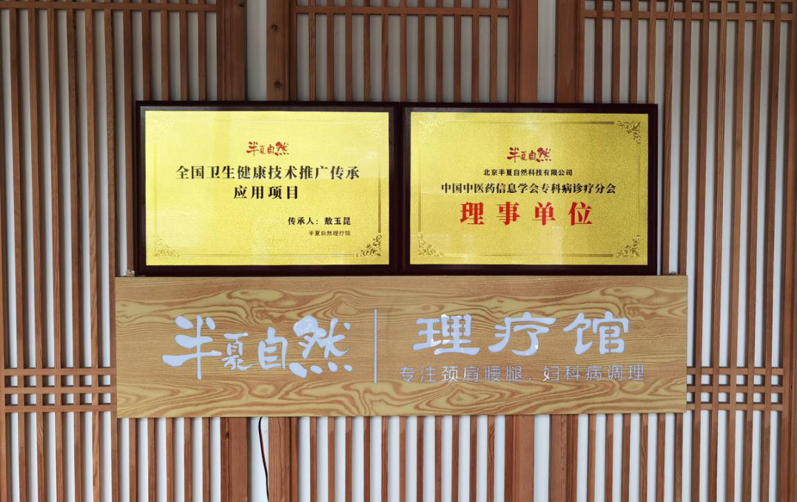 2020年6月,北京半夏自然科技有限公司成为“中国中医药信息学会专科病诊疗分会”理事单位,同时,半夏自然理疗馆创始人敖玉昆先生所独创的“立体疗法理论”及李糯老师所独创的“医承华佗灸”疗法被评为“全国卫生健康技术推广传承应用项目”。