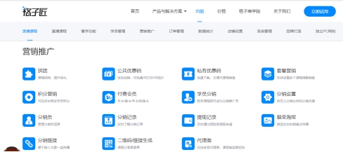 另一个就是基于我们目前应用的社交软件进行营销方式上的引流拓粉,比如微信社交生态圈。因为格子匠系统支持知识店铺在H5、小程序、PC网校、APP等多端口自由搭建,这时可以利用格子匠系统中的各类营销工具,比如积分营销、会员套餐、分销、拼团、代理商、海报裂变等工具,在微信群、朋友圈中进行引流裂变。通过格子匠打造微信生态闭环,不少商家都获得了超预期的用户增长。