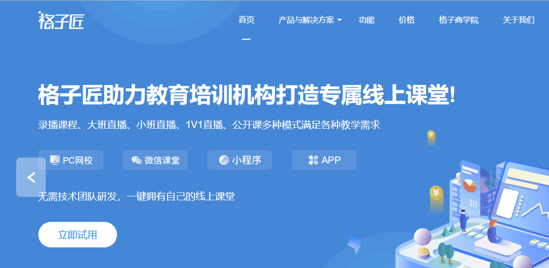 格子匠作为专业的泛知识行业技术服务商,可以帮助内容付费创作者低成本快速搭建自己的在线知识店铺。比如通过格子匠搭建基于微信生态的轻量级在线知识课堂,学员直接通过微信小程序、公众号、H5入口一键直达知识店铺。除了基于微信生态搭建教学平台,格子匠也支持PC端、APP搭建,机构可以拥有属于自己域名的PC端在线课堂或学习管理型APP,帮助知识付费商家打造内容付费、督学工具、学员管理、营销互动、品牌打造一体的平台,实现课程观看、课程变现、课程传播的生态闭环。