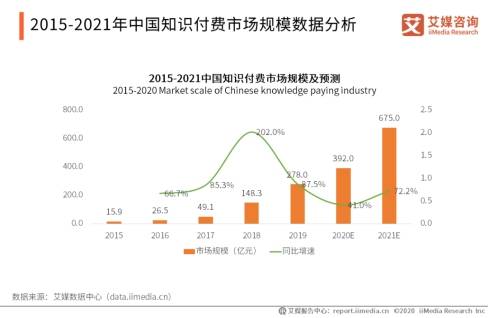 根据艾媒咨询的调查,2019年,中国知识付费行业用户规模达3.6亿人,行业市场规模达278.0亿元,预计2020年将突破392亿元。在2020年在线学习用户中,88.8%用户购买过知识付费产品,在线学习用户以80后和90后的年轻人为主,主要分布在一线和二线经济发达的城市,知识付费市场潜力巨大。