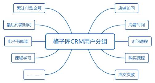 为了构建一个更具体的用户画像,格子匠CRM系统自定义以访问店铺、访问课程、课程试学等多个维度组成的用户人群分组,筛选出符合条件的高价值用户作为重点跟进对象。比如用户试学过某个课程,机构销售人员可以根据用户行为数据优先接触有效用户,节省人力筛选成本。