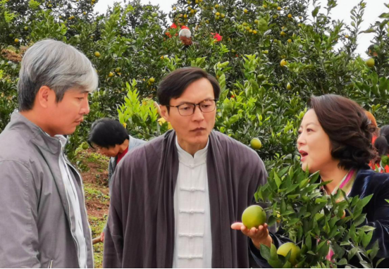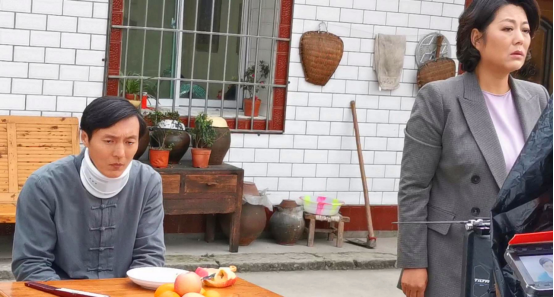 也是去年的这个时候,正是秋高气爽的时节,《月是故乡明》在四川资中的沱江江畔开机了。拍摄现场距离县城的驻地要绕山行车50分钟左右才能到达,是真正的农乡种植园腹地。剧组的前期置景人员在沱江边建起了一个有牌楼的码头,在码头边上新建了一个高达十几米的水利灌溉用永动大水车,整个码头布局犹如一副油画。距离码头百米就是剧组斥巨资提前一年建设起来的一个全实景的,既有古戏台又有村大队部、食堂、民居、甚至医疗室的完整农村村舍风貌的主题场景园区,本剧剧本中几乎所有的内景部分都是在这个实景拍摄基地内完成的。