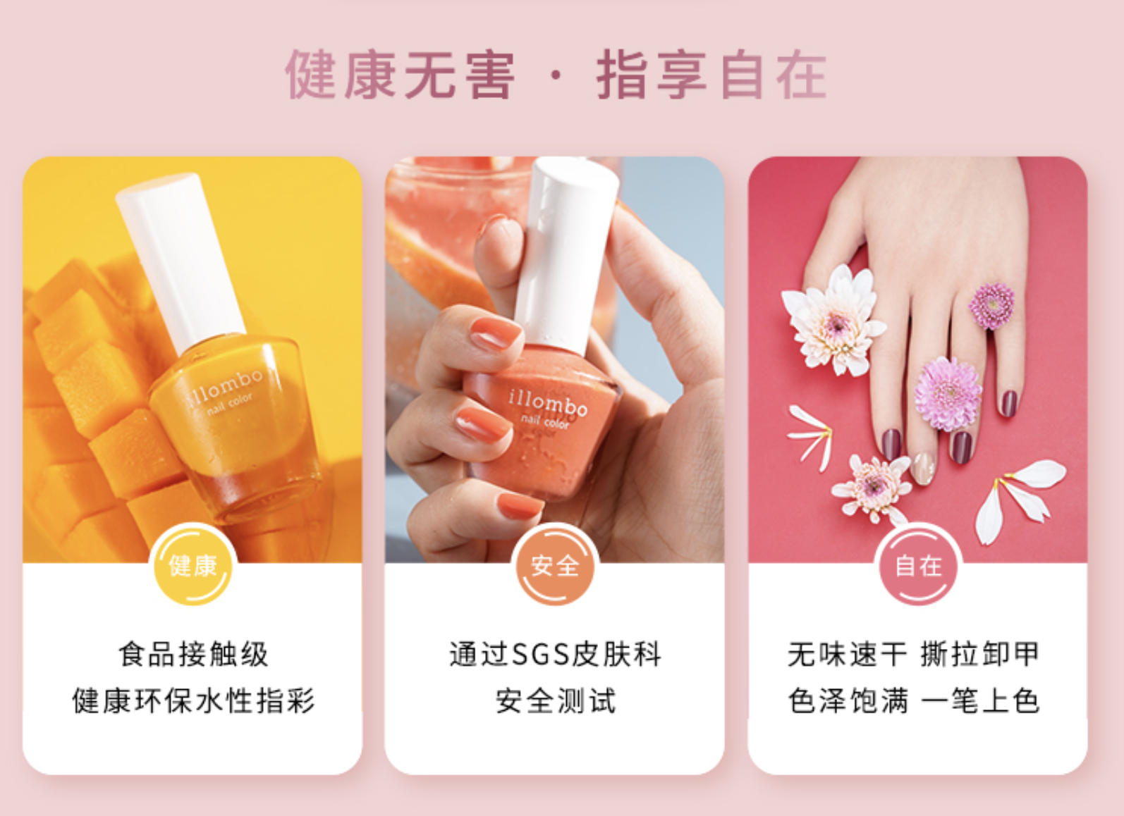 此次活动中派送的illombo怡兰葆水性指彩,是一款能亲吻的食品接触级指彩。通过了SGS皮肤科安全测试,无味无害,安全健康,无需卸甲水,一撕即可焕新。从原料,到使用,将健康落在每个环节中,贴心呵护每一位热爱美甲人士的指彩体验,让美丽没有负担。