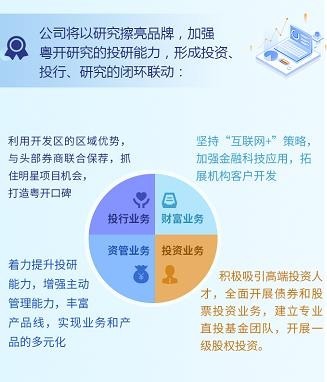 作为控股股东广州开发区控股集团旗下金融板块的主要引领,粤开证券将协同“金融、科技、园区”三大板块业务,以“资本赋能科创实业”为使命,力求为实体经济发展提供高质量金融服务,用资本助力实体经济,促进优质科技企业的长远发展。