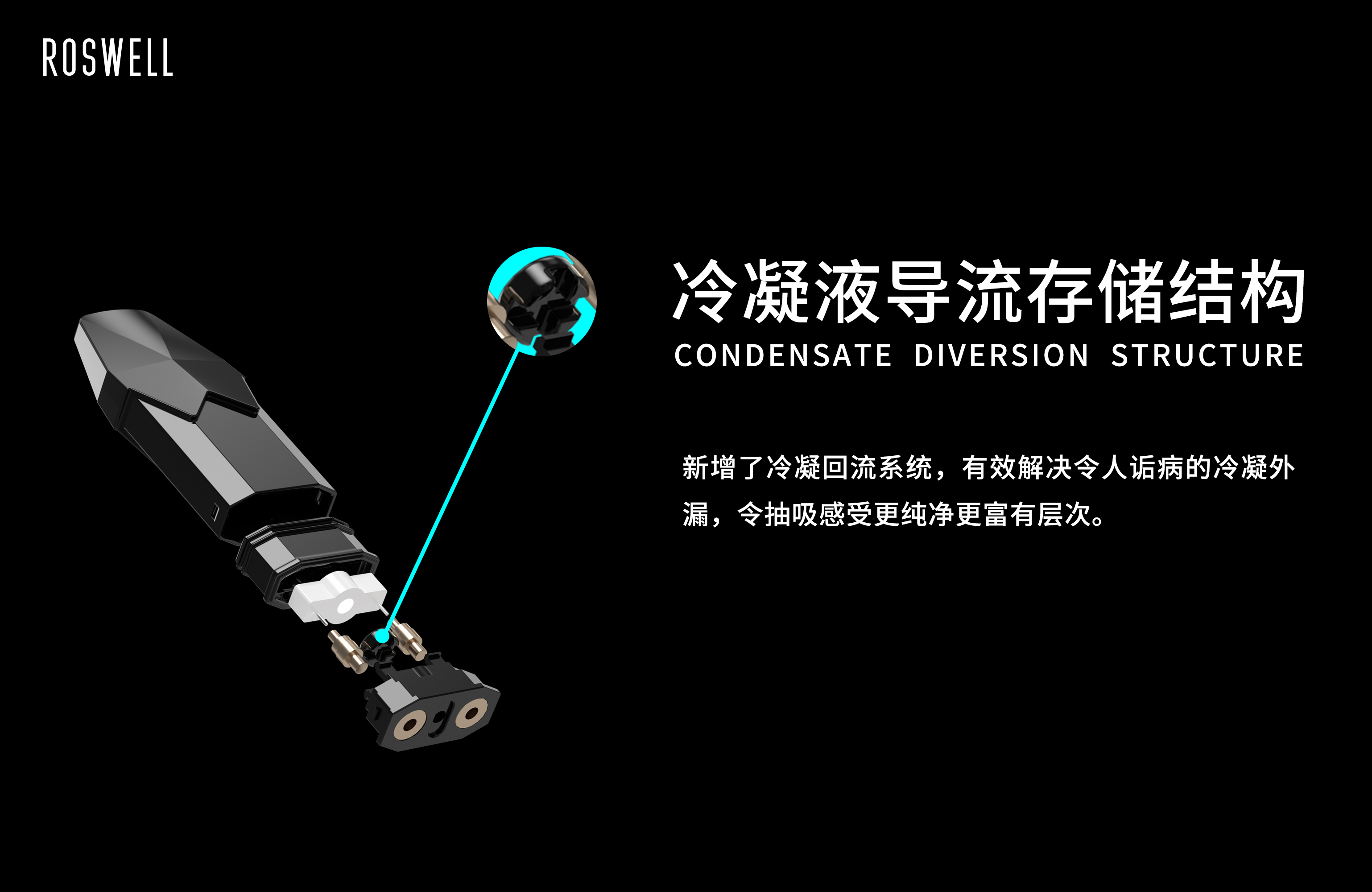 在这样的品牌理念引领下,其团队在雾化技术的探索方面表现非常积极,基于过往积累的成熟的研发经验和供应链优势,ROSWELL开始打造一款赋有感染力的换弹式产品。但是要想在常规中突出,只能从解决痛点从而建设差异化优势上来精耕细作。