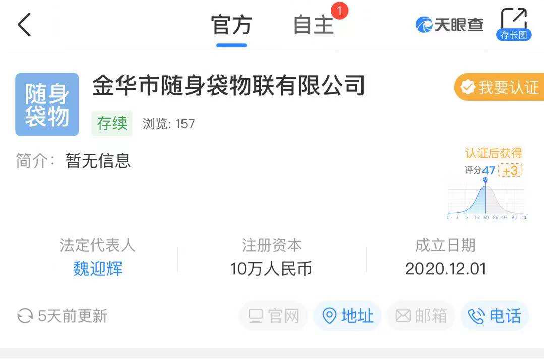 杭州秦怡科技收购金华随身袋物联网科技有限公司