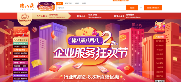 7月19日,“猪八戒八月八 企业服务狂欢节”(以下简称“八八节”)活动广告亮相猪八戒官网首页,宣告一年一度的猪八戒网企业服务年中大促狂欢正式拉开大幕。据了解,今年的“八八节”将通过企业服务两折起大促、服务新品1元起试用等多种形式,赋能企业数字化转型,助力企业实现数字化经营。