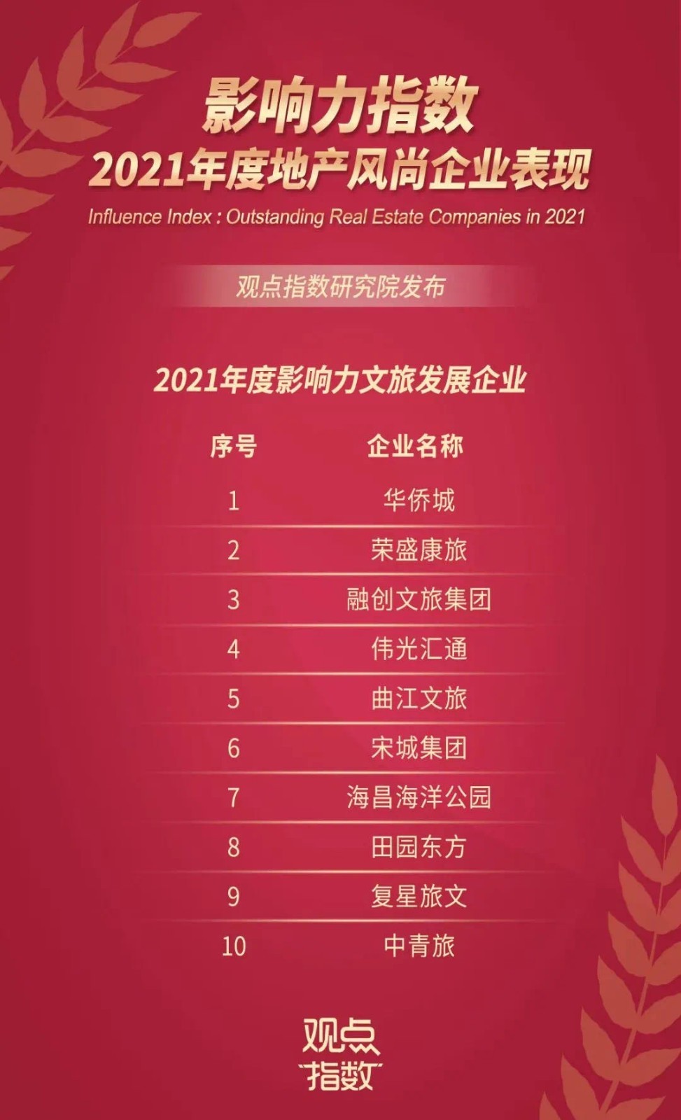 论坛上,观点指数隆重发布了“影响力指数·2021年度地产风尚企业表现”研究成果。田园东方荣登“2021年度中国影响力文旅发展企业”前十强,该榜单旨在表彰那些具有长期运营能力、打造出标杆文旅项目的地产企业。