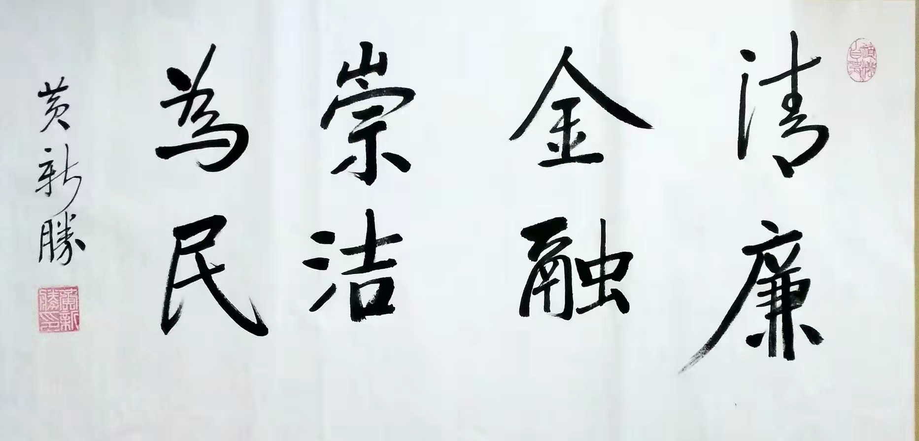 自幼酷爱祖国传统书法文化,7岁开始临摩欧阳询、赵孟頫等古碑帖书法,几十年来勤于临帖,能有一定的古雅神气韵,初步形成了一定的个人风格。