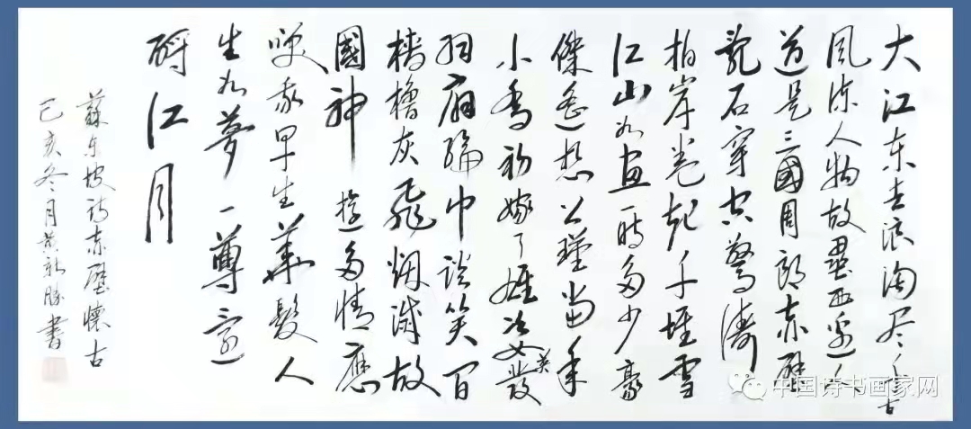 先生写书法,诸书皆成,,可以在一划之内变起伏于锋杪,也可以在一点之间殊衄挫于毫芒,笔法变化无穷,遂心应手。在牵丝映带之间,把书法写得锋须往来,高低有趣。赵子昂有论,用笔千古不易。不易的感悟,源于他细细琢磨兰亭序的笔法变化,由是写入兰亭十三跋,成为文人书法用笔妙于变化的共识。黄新胜书法,深师兰亭风,也觉悟不易之法,复作变化之功,把书法艺术的线条本质表现得无以复加!