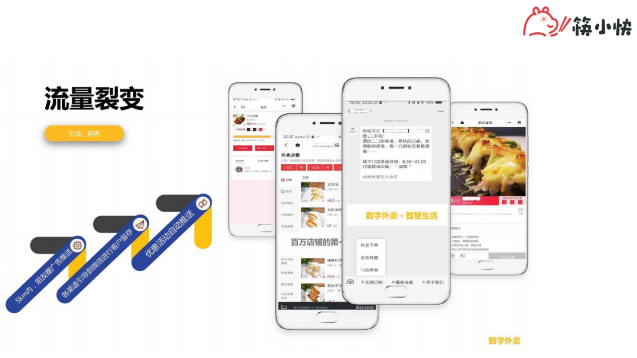 面对拓客引流难、外卖成本高、顾客复购少等一系列问题,筷小快的出现无疑给餐饮商家多了一个选择。凭借雄厚的产品技术优势和强大的线上资源整合能力,筷小快助力餐饮实体进行线上战略转型,搭建新的流量及盈利渠道。