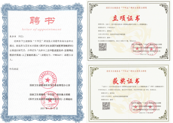 随着国家卫健委“十四五”规划和医药卫生体制改革的不断深入,其《九针十二法中医适宜技术-互联网远程诊疗系统-人工智能机器人》课题,纳入国家卫健委“十四五”全国重点课题,此项高新科技课题组研究员由殷学臣、殷华一完成,为新时代医疗卫生事业发展提供学科支持和技术保障,在国家卫健委的指导下,让这崭新的医学概念真正做到在建设健康中国、实现中国梦的伟大征程中谱写新的篇章。