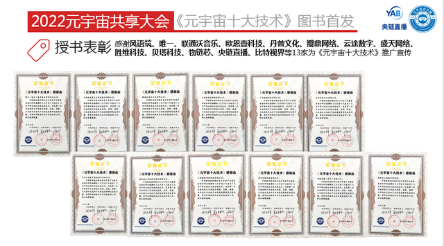 感谢风语筑、唯一、联通沃音乐、欧恩壹科技、丹曾文化、瓣鼎网络、云途数字、盛天网络、胜维科技、贝塔科技、物链芯、央链直播、比特视界等13家为《元宇宙十大技术》推广宣传。