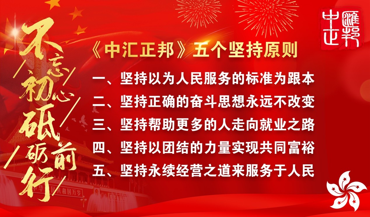 中汇正邦,利国利民,利他利己,同享丰盛,超越非凡,大道浩荡,任重而道远。