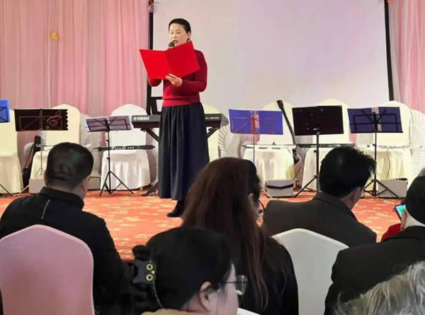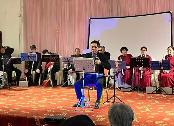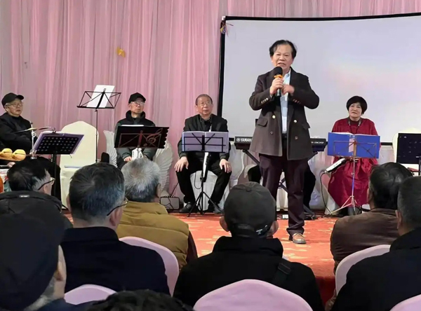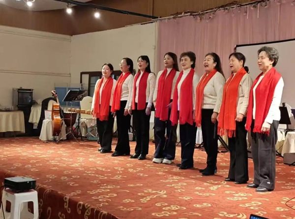 参观完后,一行人来到了九尺镇龙福社区进行文艺演出。会员们唱歌跳舞、吟诗诵词、吹拉弹唱,歌颂红军歌颂党,歌颂我们的新生活。最后,在我们的生活充满阳光的大合唱中结束。