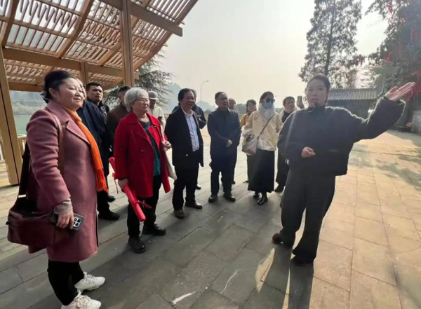 上午,一行人首先抵达湔江堰大坝,了解了湔江灌溉区的基本情况,知道了彭州之所以成为全国五大蔬菜基地的主要原因,了解了水利工程的重要作用。紧接着,来到附近的文翁祠,参观了文翁陈列馆和文翁祠。大家原来只知道成都有个石室中学又叫文翁中学。现在知道了文翁不仅治学,还治吏、治水,是汉景帝时蜀郡的太守,一位清廉有为的好官。