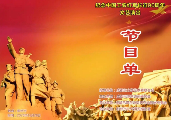 今年是抗日战争暨世界反法西斯战争胜利80周年,也是红军长征90周年。为了弘扬长征精神,铭记革命先辈,传播红色文化,挖掘地方文化,为当地的文化建设和红色文旅注入新鲜活力,成都毛泽东诗词研究会组织一批文艺家到彭州,举行了这次送文化下乡的采风、研学活动。(来源:企业家日报)