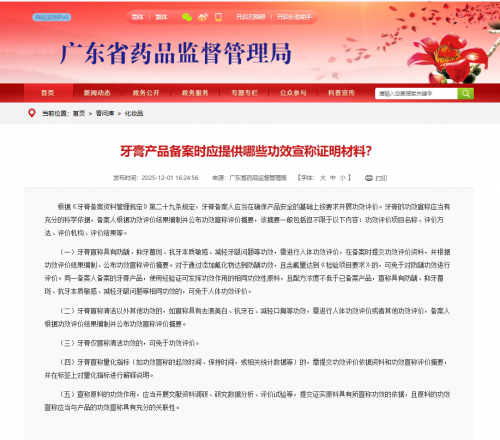 依然以媒体就“俊小白”部分牙膏产品功效宣称提出质疑为例,报道指出,未能在备案信息中查询到“修护牙釉质”“美白”等功效。