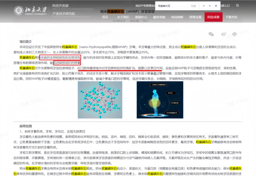 2024年,俊小白联合赵东元院士科研团队在羟基磷灰石将其分子升级为更小的介孔结构,小到头发丝的万分之一。这一创新使羟基磷灰石更具卓越的人体生物相容性,作用于牙齿表面时能迅速吸附,实现牙齿“再矿化”。